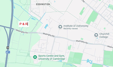 The Institute of Astronomy is a 20 minute walk from the centre of Cambridge. Buses to the centre are frequent (Citi 4, X3, 905, U1, U2, 8) and stop outside or near the IoA. There are also frequent Park & Ride buses from the nearby Madingley Road Park & Ride which is also suitable for parking for the 4, 8, X3, 905 . On the map below, the P & R is about a ten-minute walk from the IoA